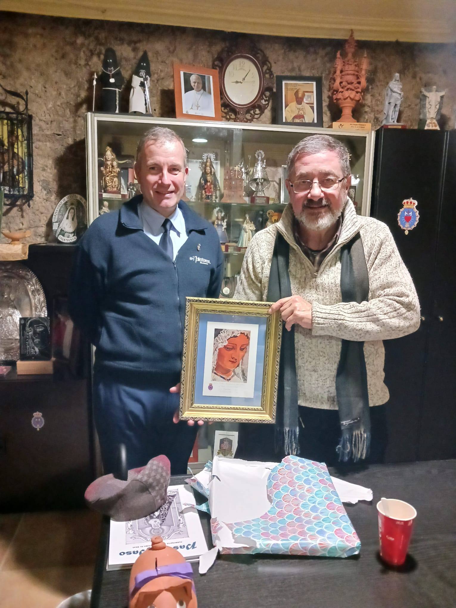 El encuentro se cerró, después del receso del café, con la explicación de la reciente regularización especial aprobada para legalizar a multitud de personas que ya viven y trabajan en nuestro país. El Hermano Mayor le agradeció a José del Riego su visita y le hizo entrega de un cuadro con la imagen de Nuestra Señora de los Dolores.