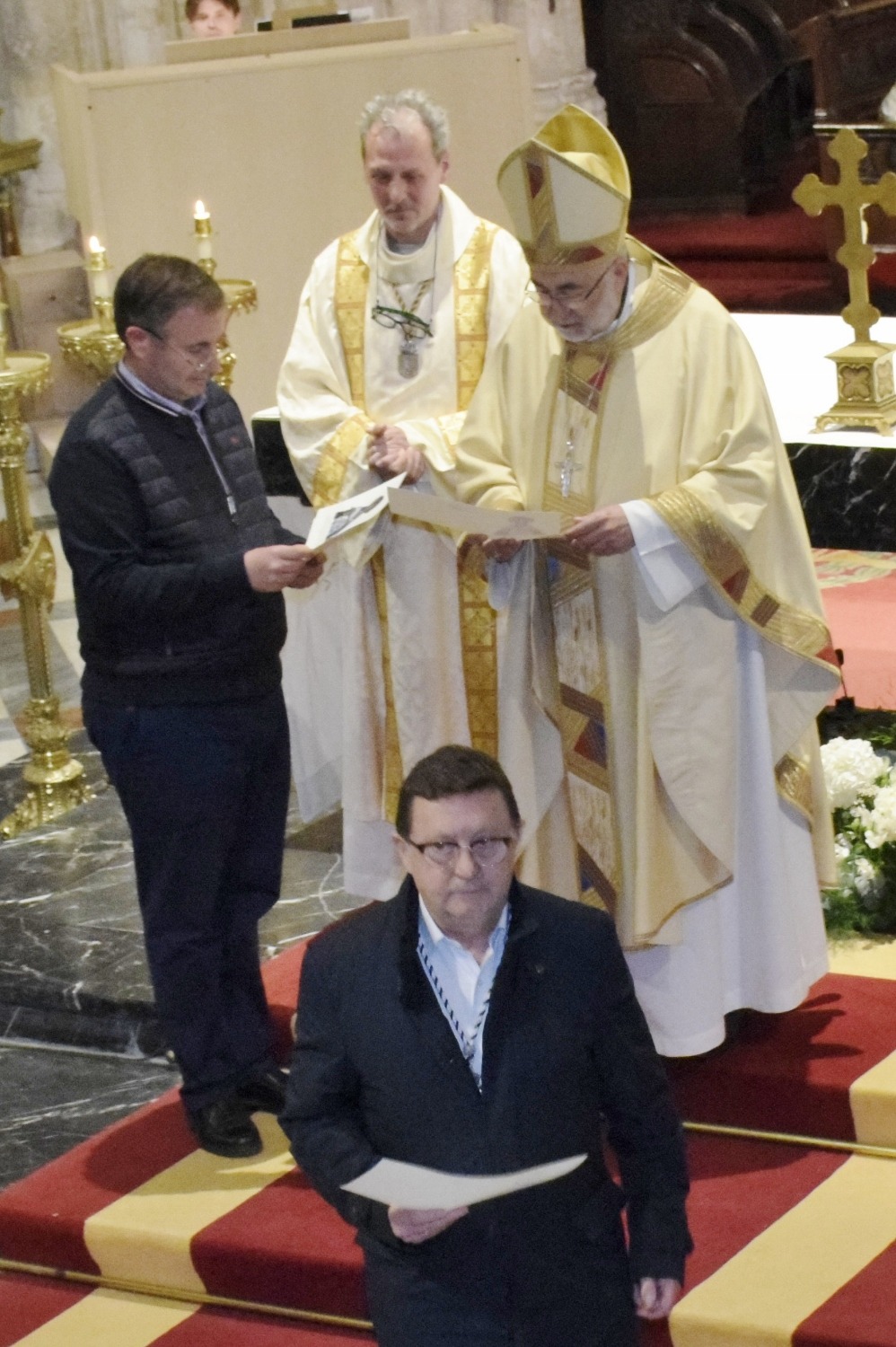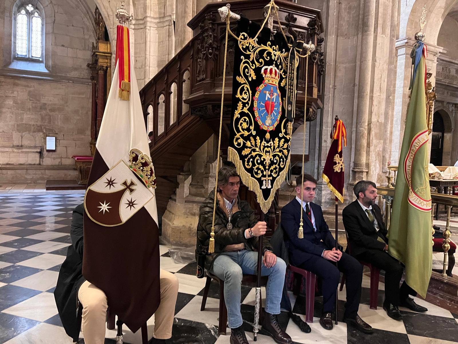 Nos reunimos veintisiete cofradías, tanto de gloria como de pasión, de diversos puntos de la geografía asturiana para compartir las gracias del año jubilar y testimoniar, cada uno desde su devoción, la alegría de la fe que nos trae el Señor Resucitado. Como recuerdo de la jornada, el Sr. Arzobispo nos entregó un diploma ilustrado con la imagen de Nuestra Señora de la Esperanza, La Balesquida, que fue recogido por el Vicehermano Mayor, Iñaki Basterra.